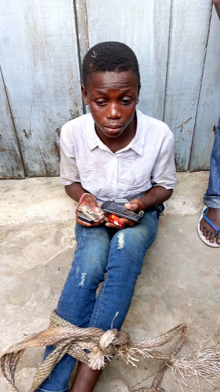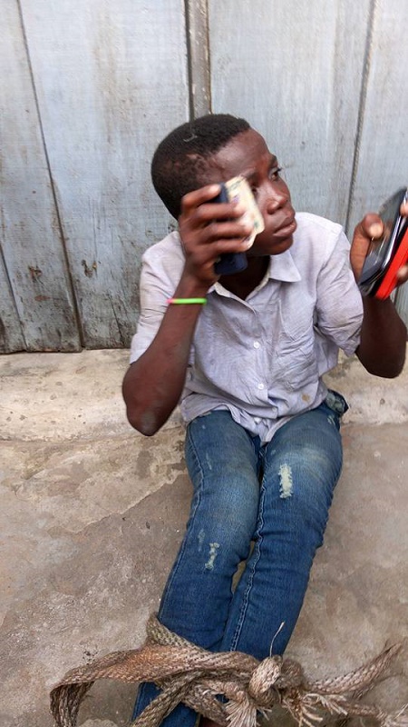 Oh no! See what was done to a teenage boy caught stealing phone and money (Photos)