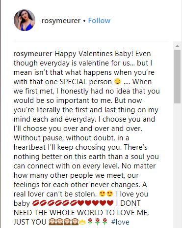 Rosaline Meurer has indirectly sent a Valentine's Day message to her faceless boyfriend.
