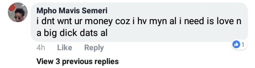 "I dnt want your money coz i have mine all I need is love and a big dick dats all," she further explained.