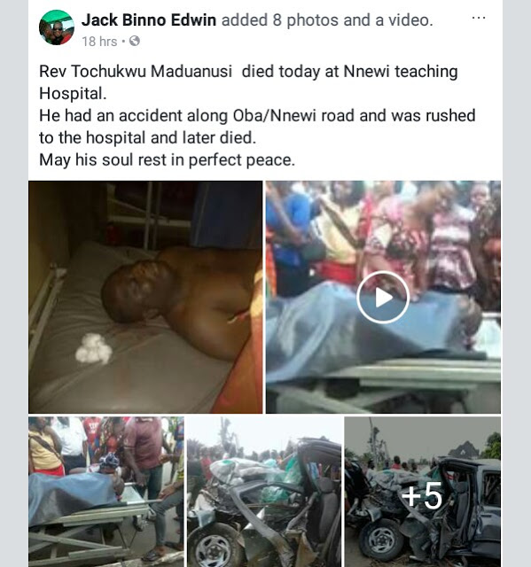 It was a shocking and sad moment as some friends cried endlessly after a priest of the Anglican Church, Rev. Tochukwu Maduanusi passed away on Saturday, at Nnewi Teaching Hospital after being involved in a ghastly road accident.