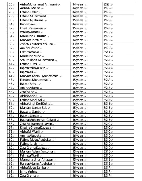 The list, which also contains the contact address and phone number of each missing girl, was verified by a 26-member Screening Committee that includes the Executive Secretary, State Teaching Service Board, Musa Abdulsalam; Director, Schools’ Management, Ministry of Education, Shuaibu Bulama; Principal of GGSTC, Adama Abdulkarim; the two Vice Principals, Ali Musa Mabu and Abdullahi Sule Lampo; Admission Officer, Bashir Ali Yerima, and the Form Masters for all the classes.