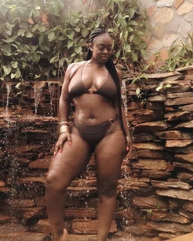 The eye-popping bikini photos have kept tongues wagging on social media. She showcased her body in a brown two-piece bikini.