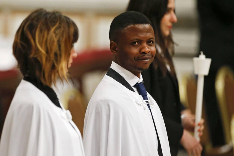John Ogah and seven other adults were baptized during an Easter eve mass for about 10,000 people in St. Peter’s Basilica. (Reuters)