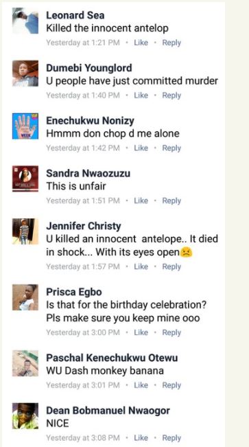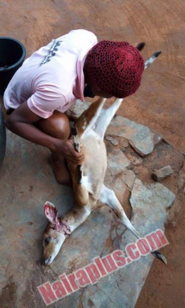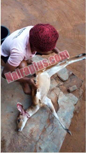 A Nigerian lady took to her social media platform to show the public an antelope they killed at her community in Anambra State.