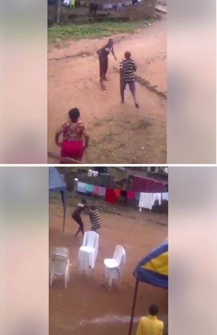 The man tried to attack and beat the young man who was fighting with a lady in public. Onlookers tried to stop the fight between the young man and the lady as they held each other before the man decided to step in and fight for her.