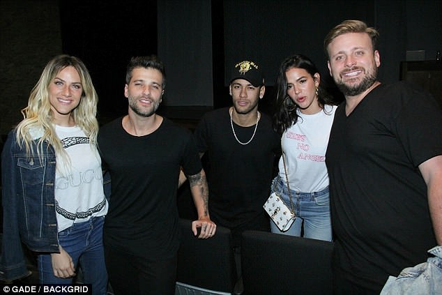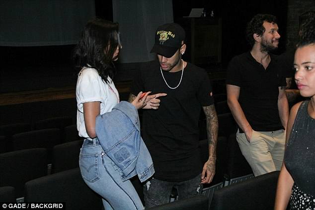 Paris Saint-Germain and Brazil talisman Neymar couldn't keep his hands off girlfriend Bruna Marquezine on Thursday as the pair attended a Thiago Gagliasso play at the Laura Alvim theatre in Rio de Janeiro.
