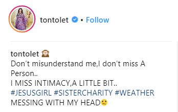 I Miss Being Held, Kissed And Touched - Tonto Dikeh Reacts After Heavy Rain