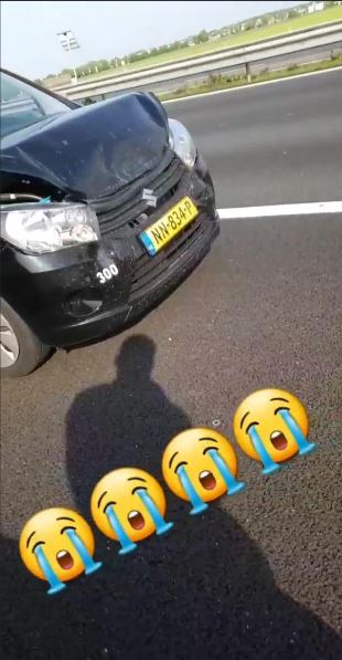 His next video showed the vehicle pulled over on the side of a road, with a smashed up car directly behind it.