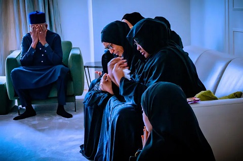 A photo shared online showed the Vice President at a house meeting Aisha and her children.