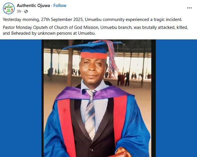 Monday, aged 59, was k!lled and beheaded by unknown assailants on Saturday, September 27, 2025.