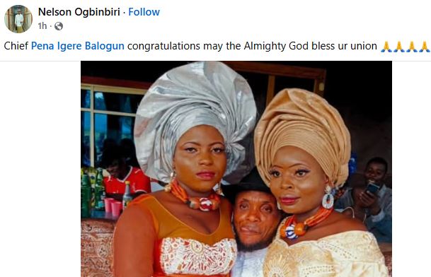 A Delta man, Chief Pena Igere Bologun Fetimi, has tied the knot with two women on the same day.