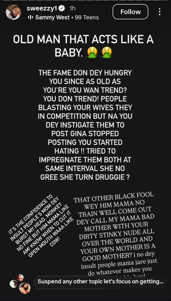 In a new post he published on his Instagram story, Sweezy made shocking allegations against Ned Nwoko.
