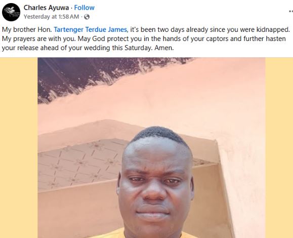 It was gathered that James was kidnapped on Tuesday evening, December 9, 2025 while travelling to Cross River State to buy palm oil for his traditional marriage which is scheduled for Saturday, December 13 in Gwer West Local Government Area of Benue State.