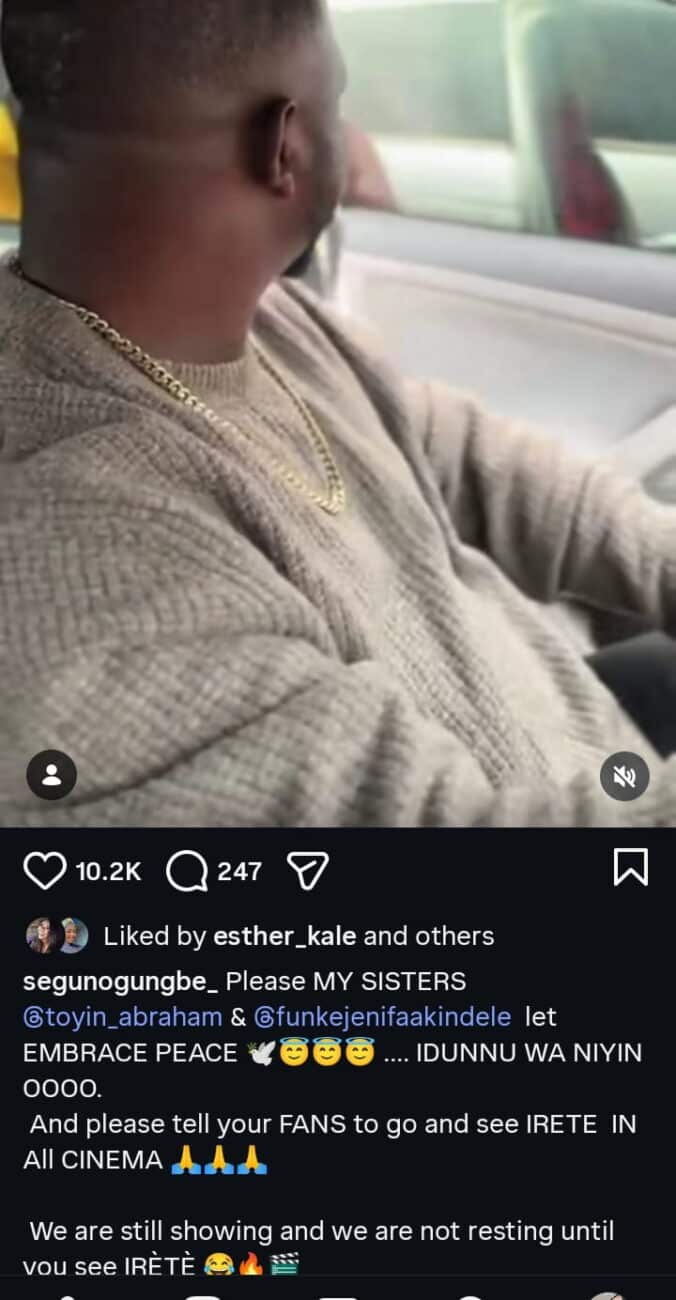 “Please MY SISTERS @toyin_abraham & @funkejenifaakindele let EMBRACE PEACE …. IDUNNU WA NIYIN OOOO.